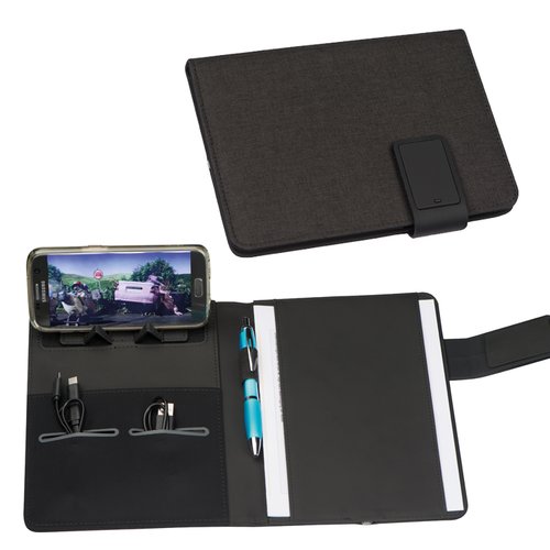 A5 Schreibmappe mit integrierter Powerbank (4.000 mAh) und LED rot