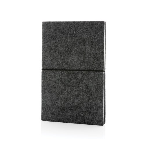 A5-Softcover-Notizbuch aus GRS zertifiert recyceltem Filz schwarz