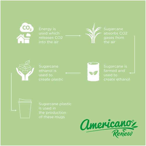 Der einwandige Becher Americano® Switch Renew ist der perfekte Becher für den Kaffeegenuss unterwegs. Er hat ein Fassungsvermögen von 300 ml und einen sicheren Stülpdeckel und ist der ideale Ersatz für Einweg-Kaffeebecher. Der Becher enthält 25 % Kunststoff, der aus Zuckerrohr gewonnen wird, wodurch der Bedarf an neuem Kunststoff reduziert wird. Spülmaschinenfest, mikrowellenfest und BPA-frei. Als Teil der Americano® Switch-Familie können Sie Ihren Becher durch Hinzufügen eines Deckels und eines Griffs nach Belieben individuell gestalten. Hergestellt in UK. Verpackt in einem recycelten PE-Kunststoffbeutel.