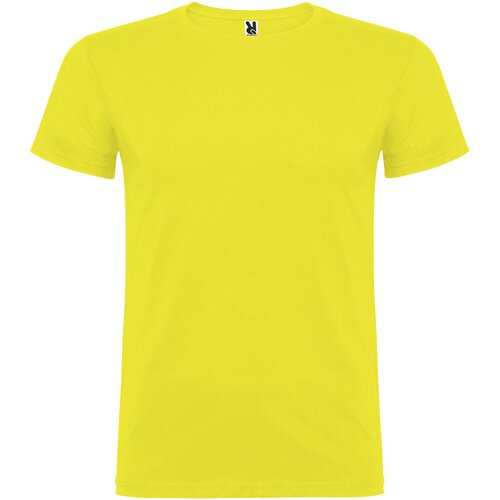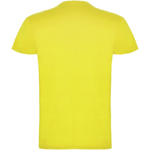 Kurzärmeliges T-Shirt mit doppellagigem Rundhalsausschnitt aus Elasthan, hergestellt aus schlauchförmigem Material für Erwachsene. Verstärkte und verdeckte Nähte am Kragen. Herausnehmbares Etikett. Das Modell ist 190 cm groß und trägt Größe L.