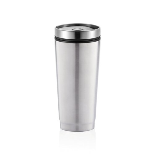 350ml Becher aus Edelstahl, innen Kunststoff, mit Push-Knopf zum dichten Verschließen des Bechers, geeignet zur einhändigen Bedienung. Nur Handwäsche. Geschütztes Design®