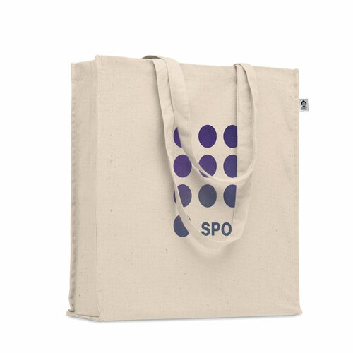 Einkaufstasche aus Organic Cotton mit langen Tragegriffen und Bodenfalz. 220 g/m².