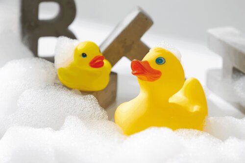 Quietsche-Ente BETTY: frei von Phthalaten, geeignet für Kinder unter 3 Jahren