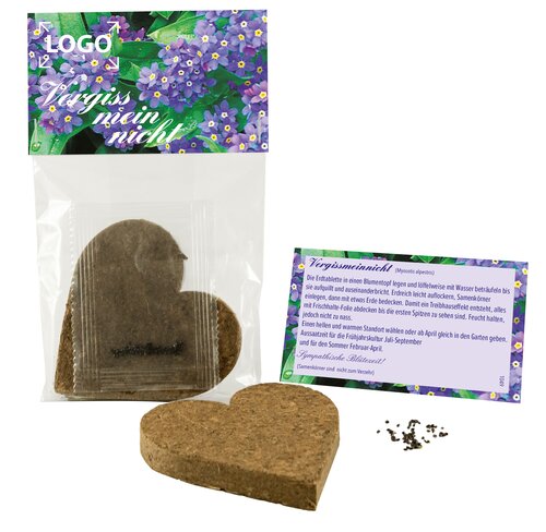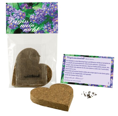 Eine herzliche Angelegenheit ist unsere Erdtablette in Herz-Form. Zusammen mit dem Vergissmeinnicht-Samen gelingt so ein überzeugendes Giveaway, das jeden anspricht. Der Header kann mit einem Werbeeindruck versehen werden oder, ebenfalls ab 250 Stück, individuell gestaltet werden.