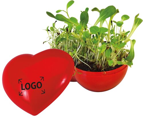 Die wunderschöne Idee: Lasst Blumen sprechen! Und somit eine Botschaft für blühende Geschäfte, wachsende Umsätze und Geschäftsverbindungen, die gedeihen sollen. Platz für den Werbedruck (ab 100 Stück) ist auf dem Deckel als Tampondruck.
