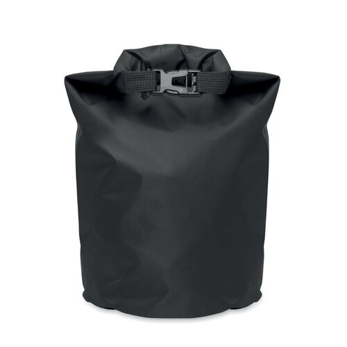 Wasserfester Beutel (IPX6) aus 210T RPET Ripstop. Rollschließmechanismus mit Steckverschluss und Schultergurt. Füllmenge: 5L.