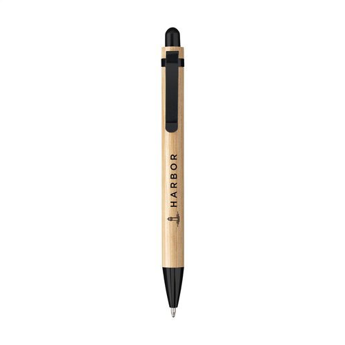 WoW! Blauschreibender oder schwarzschreibender Kugelschreiber mit Bambusgehäuse und Metall-Clip.