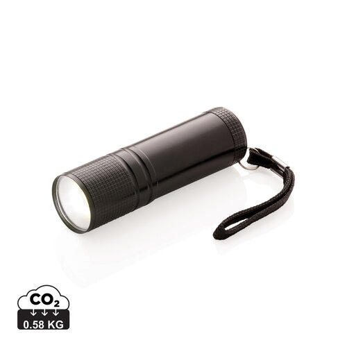 Superhelle COB-Leuchte im Taschenformat. COB ist heller ist das althergebrachte LED und benötigt dabei noch weniger Energie - kann somit bis zu 30% länger leuchten. Aluminiumgehäuse mit Trageriemen. Inkl. 3xAAA-Batterien