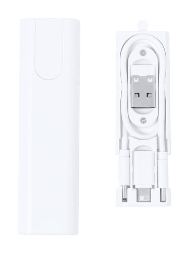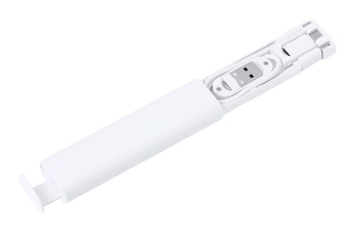 USB-Ladekabelset im Etui aus ABS Kunststoff mit Handyhalterfunktion, SIM-Card Auswurf, Mikro-USB, USB, USB-C und Lightning Steckern.