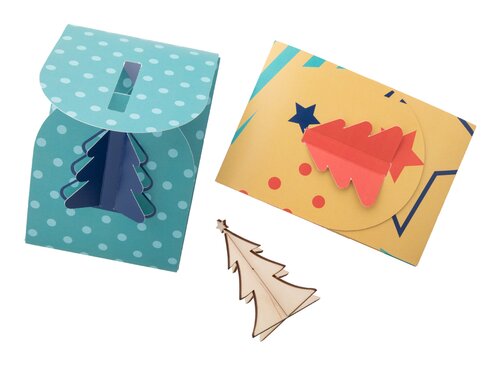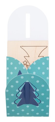 ndividuelle, faltbare Weihnachtskarte aus Papier mit individueller Grafik und gestanzter Weihnachtsbaumform auf dem Einband, einschließlich Bastelpuzzle aus Holz in Form eines Weihnachtsbaums. Inklusive C6-Postumschlag. Mindestbestellmenge: 100 Stück.