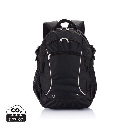 Laptoprucksack, 1680D und Jacquard, Hauptfach mit Reißverschluss und wattiertem 15,6’’ Laptopfach, Frontfach mit Organizer, 2 Netztaschen seitlich, reflektierende Nähte.