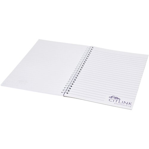 Desk-Mate® A4 Spiralnotizbuch. Dieses Notizbuch verfügt über eine weiße oder schwarze Spiralbindung, ein glänzendes Karton-Deckblatt (250g/m2) und 80g/m2-Blankopapier. Standardlieferung mit 50 Blatt, auch erhältlich mit 80 Blatt.Sie können die Seiten dieses praktischen Notizbuchs mit jedem beliebigen Design gestalten - ob liniertes, kariertes oder gepunktetes Papier - alles ist möglich!