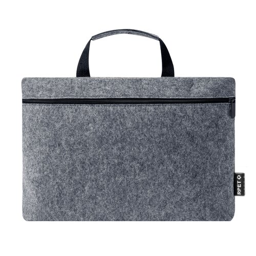 Dokumententasche aus strapazierfähigem RPET-Filz mit Melange-Effekt. Hauptfach mit Reißverschluss für Laptops bis zu 15" und kleines Innenfach. Mit passenden robusten Griffen mit schwarzen Details. RPET-Emblem auf dem Außenetikett.RPET-Filz ist das Ergebnis der Kombination des Recyclingprozesses von Kunststoffen mit der jahrtausendealten Technik der Filzherstellung. Das Ergebnis ist ein Öko-Trend-Material, das nicht nur aus recyceltem Material besteht, sondern auch wiederverwertbar ist.
