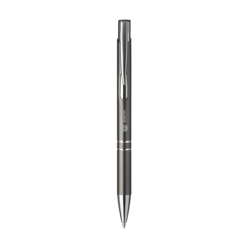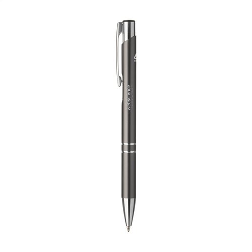 Blauschreibender Kugelschreiber aus recyceltem Aluminium. Der Halter ist mit einer wunderschön glänzenden Oberfläche im Metallic-Look versehen. Mit Metallclip. Durch die Verwendung von recyceltem Aluminium werden bei der Herstellung dieses Produkts weniger neue Rohstoffe verwendet. Das bedeutet weniger Energieverbrauch und weniger Wasserverbrauch.