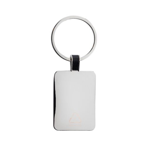 Eckiger Schlüsselanhänger aus RCS recycelter Zinklegierung. Gesamter recycelter Inhalt: 84%, bezogen auf das Gesamtgewicht des Artikels. Die RCS-Zertifizierung gewährleistet eine vollständig zertifizierte Lieferkette der recycelten Materialien. Verpackt in einer Papiertüte.