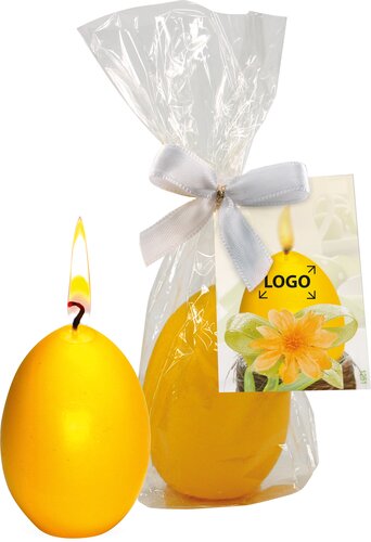Eine nette österliche Aufmerksamkeit zu Ostern. Die Ei-Kerze strahlt Osterstimmung aus. Das Anhängekärtchen bietet Platz für Ihren Werbeaufdruck. Eine eigene Gestaltung des Kärtchens ist bereits ab 250 Stück möglich.