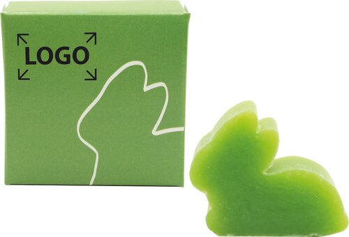 In der ansprechenden Packung befindet sich eine Schafmilchseife in Hasenform. Ein perfektes kleines Wellnesspräsent zu Ostern. Ein Werbeeindruck oder eine individuelle Gestaltung der Packung ist bereits ab 250 Stück möglich.