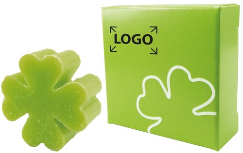 Zum Jahresaufklang bringt das Kleeblatt nicht nur Glück. Die natürlichen Zutaten der Schafmilchseife Wollfett und Schafmilch sind eine Wohltat für empfindliche Haut. Ein Werbeeindruck oder eine individuelle Gestaltung der Packung ist bereits ab 250 Stück möglich.
