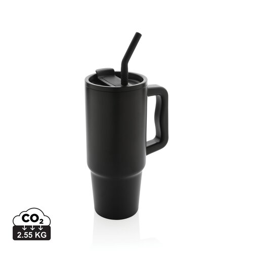 Erleben Sie, wie geräumig und doch bequem tragbar unser großzügig bemessener Becher ist - nicht zu groß, nicht zu klein. Dank des schlanken Bodens passt er perfekt in die meisten Getränkehalter und sorgt dafür, dass Sie erfrischt bleiben, egal ob Sie einen langen Meeting-Tag durchstehen oder eine Reise in die Stadt antreten. Dieser 900ml-Becher ist aus langlebigem, recyceltem Edelstahl gefertigt. Doppelwandig & vakuumisoliert. Er wird mit einem Schwappschutz-Deckel, einem Trinkhalm & einer Trinkhalmspitze aus Silikon geliefert. Er eignet sich sowohl für heiße als auch für kalte Getränke. Für eine optimale Pflege empfehlen wir Handwäsche. Die RCS-Zertifizierung gewährleistet eine vollständig zertifizierte Lieferkette für die recycelten Materialien. Gesamter recycelter Inhalt: 70%, bezogen auf das Gesamtgewicht des Artikels. BPA-frei.