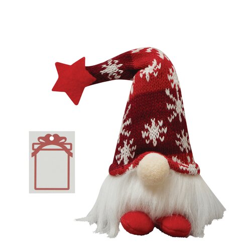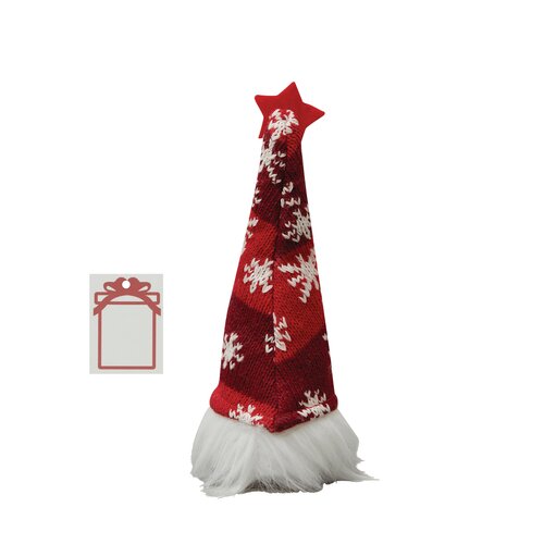 Weihnachts-Wichtel EMIL, mit Licht: Woll-Zipfelmütze, Mütze lässt sich durch integrierten Draht beliebig formen, mit an- und ausschaltbarer Beleuchtung, batteriebetrieben (2x LR44 Knopfzellen enthalten), mit Geschenkanhänger zum Bedrucken