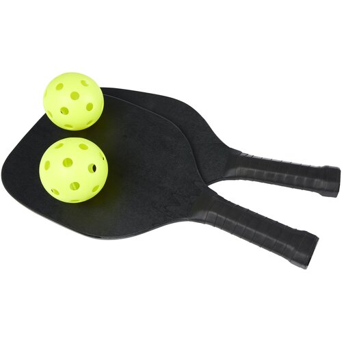 Dieses Sportset aus Pappelholz sorgt für viel Spaß und Bewegung zu zweit am Strand, im Park oder im Garten. Die Schläger haben eine Größe von 40 x 20 x 0,7 cm und sind in schwarzer Farbe lackiert, was eine große Fläche für den Druck eines Logos bietet. Die Griffe sind mit PU-Band umwickelt und bieten maximalen Halt, wenn es beim Spiel lebhaft zugeht. Das Set ist komplett mit 2 Bällen aus PP-Material in einem Netzbeutel aus Polyester mit einer Größe von 45 x 26 cm verpackt. Achtung! Nicht für Kinder unter drei Jahren geeignet. Verschluckbare Kleinteile, Erstickungsgefahr.