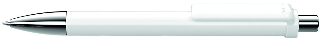 Druckkugelschreiber mit gedeckt glänzendem Schaft und Clip, Metallspitze und Metalldrücker glanzverchromt.