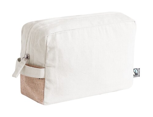 Kosmetiktasche aus Fairtrade-Baumwolle und laminierter Jute mit Reißverschluss und Fairtrade-Label. Material: 100 % Fairtrade-Baumwolle, 180 g/m².