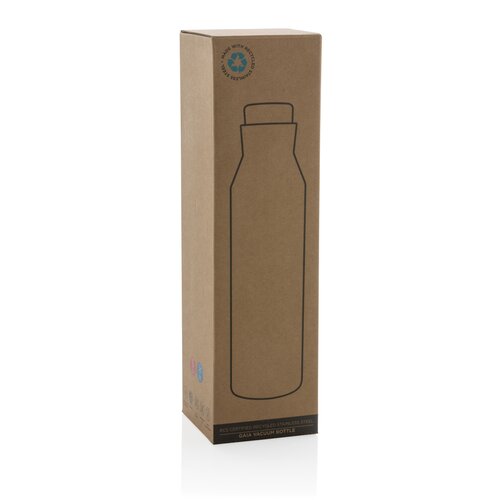 Mit der auslaufsicheren Gaia-Vakuumflasche kannst du überall deinen Durst stillen. Diese 600ml-Flasche aus recyceltem Stainless-Steel mit einem auslaufsicheren PP Deckel hält Ihre Getränke bis zu 5h warm und bis zu 15h kalt. BPA-frei. Hergestellt aus RCS-zertifiziert (Recycled Claim Standard) recycelten Materialien. Die RCS-Zertifizierung gewährleistet eine vollständig zertifizierte Lieferkette für die recycelten Materialien. Gesamter recycelter Inhalt: 88% basierend auf dem Gesamtgewicht des Artikels.