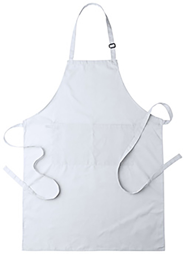 Farbige Schürze mit Vordertaschen. Material: 80% Polyester / 20% Baumwolle.