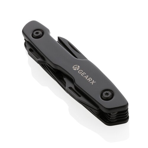 Gerade klare Linien kombiniert mit großer Funktionalität. Dieses Multifunktionswerkzeug vereint alles in einem Essential; und das im Taschenformat. Das luxuriöse Aluminiumgehäuse wird mit erstklassigen 420 Edelstahlwerkzeugen, komplett in Schwarz kombiniert. Die 13 Funktionen umfassen: Messer, Säge, Schlitzschraubendreher, Dosenöffner, Feile, kleiner Kreuzschlitzschraubendreher, Kreuzschlitzschraubendreher, Korkenzieher, Fadenführer, Lederstanze, Paketmesser, Flaschenöffner und eine kleine Klinge. Verpackt in einer luxuriösen Geschenkbox.