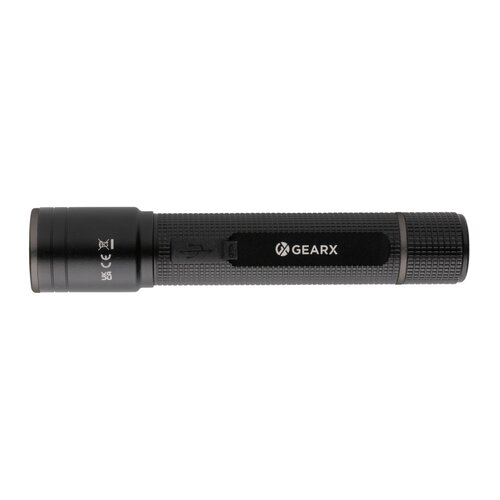 Gear X Taschenlampe aus RCS recycelt. Aluminium mit USB-Akku schwarz