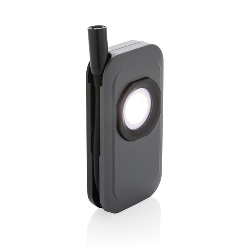 Arbeitsleuchte mit ausziehbarem LED-Licht aus RCS-zertifiziert recyceltem ABS-Kunststoff. Gesamter recycelter Inhalt: 36% basierend auf dem Gesamtgewicht des Artikels. Die RCS-Zertifizierung gewährleistet eine vollständig zertifizierte Lieferkette für die recycelten Materialien. Die Arbeitsleuchte ist mit einer wiederaufladbaren 1.000mAh-Lithiumbatterie ausgestattet, so dass die Batterien nicht ausgetauscht werden müssen. Einfach über die USB-Buchse aufladen. Die Arbeitsleuchte verfügt über ein COB-Licht mit 260 Lumen und ein ausziehbares LED-Licht mit 80 Lumen. Mit 3 Modi: LED, COB und COB 50%. Mit Magnet auf der Rückseite. Mit Type-C-Anschluss zum Wiederaufladen. Betriebszeit mit einer Ladung: bis zu 3 Stunden.