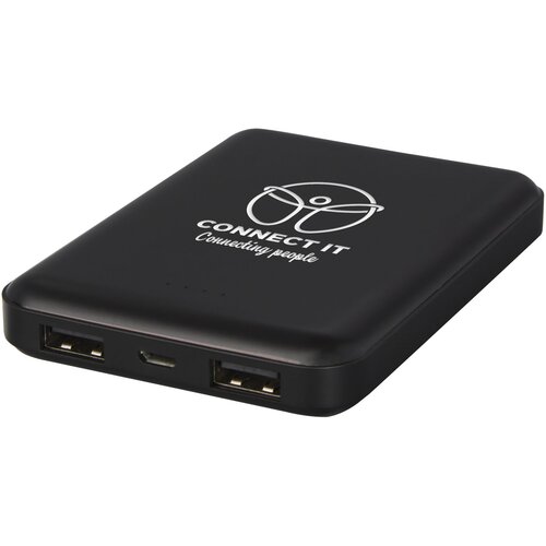 Flache und robuste Powerbank mit einem 5000 mAh Polymer Akku. Das Logo kann per Lasergravur auf der Vorderseite angebracht werden und leuchtet auf, wenn die Powerbank eingeschaltet ist oder benutzt wird. Output: 5 V/2A. Input: 5 V/2A. Aus Nachhaltigkeitsgründen wird kein Zubehörkabel mitgeliefert.