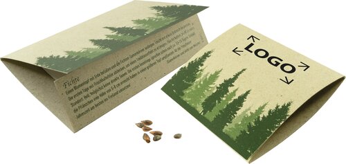 Das trendige Graspapier-Kärtchen mit den Fichten-Samen ist ein natürliches und sympathisches Giveaway in der Weihnachtszeit. Nutzen Sie das Klappkärtchen im Standardmotiv für Ihre Werbebotschaft oder, ebenfalls ab 250 Stück, für Ihre individuelle Gestaltung.