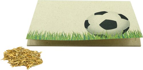 Nachhaltig und trendig. So präsentiert sich das Graspapier- Kärtchen mit den Sportrasen-Samen. Ein flacher Streuartikel, ideal als Mailingbeigabe für das angekündigte Sportereignis. Das Kärtchen bietet viel Platz für Ihre Werbebotschaft oder, ebenfalls ab 250 Stück, für Ihre individuelle Gestaltung.