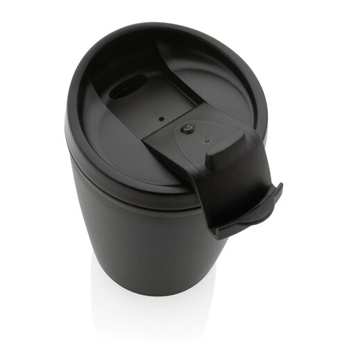 GRS recycelter PP-Becher mit Flip-Deckel schwarz