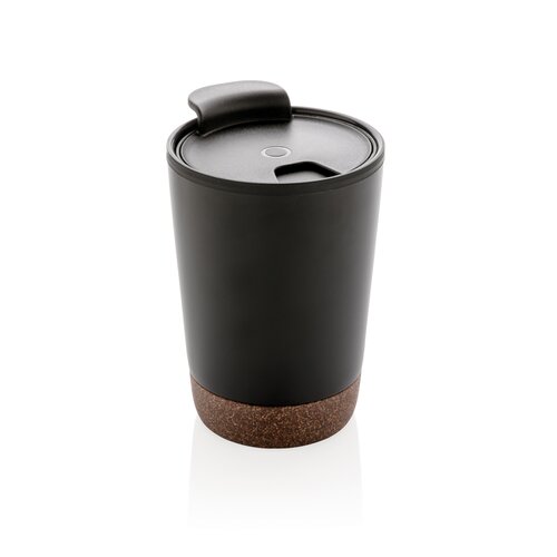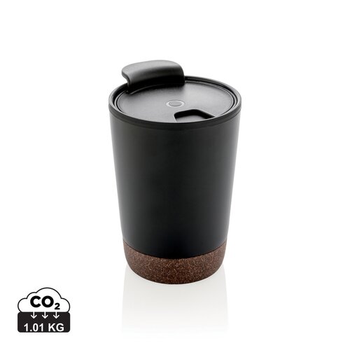 GRS rPP Edelstahl-Kaffeebecher mit Kork schwarz