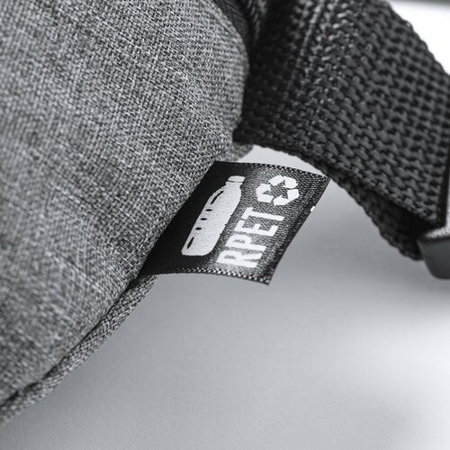 Nature Line Gürteltasche aus widerstandsfähigem 600D RPET mit Melange-Effekt. Hergestellt aus recyceltem Kunststoff, um die Wiederverwendung von Kunststoffabfällen zu fördern und einen Beitrag zur Nachhaltigkeit des Planeten zu leisten. Hauptfach mit Reißverschluss und verstellbarem Riemen mit Schnallenverschluss. Entwickelt für Sport- und Freizeitaktivitäten, mit RPET-Plakette auf dem Außenetikett.