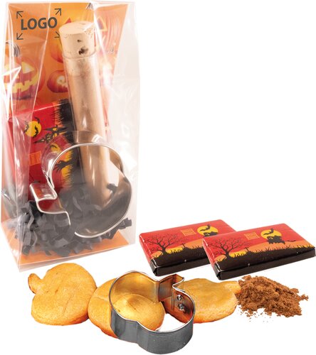 Ein sympathischer Gruß zu Halloween. Mit dem Backförmchen und der Kürbis-Gewürzmischung lassen sich schnell leckere Plätzchen zubereiten. Die Schokoladentäfelchen mit Halloween-Motiv ergänzen dieses Giveaway perfekt. Ab 250 Stück kann der Einleger im Standardmotiv mit einem Werbeeindruck oder auch vollständig individuell gestaltet werden.