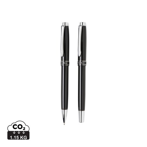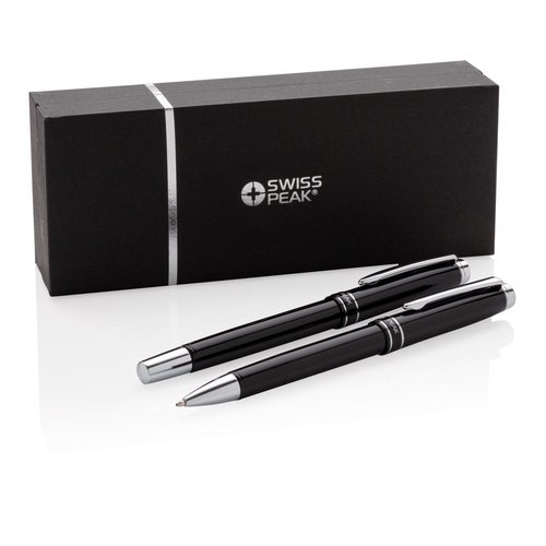Die Swiss Peak Herritage Kollektion steht für moderne Eleganz. Luxuriöser Messing Kugelschreiber und Rollerball verpackt in einer Swiss Peak Geschenkbox. Beide Stifte mit Metallmine mit je 1200m blauschreibender, deutscher Tinte.