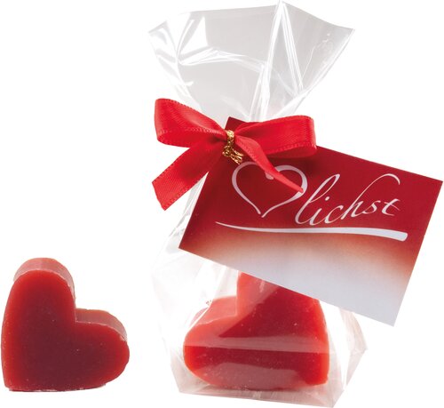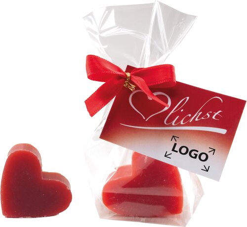 Das formschöne Herz besteht aus hochwertiger Schafmilchseife. Der Granatapfelduft macht es zu einem besonders attraktiven kleinen Werbepräsent. Auf der Anhängekarte kann der Werbeeindruck erfolgen. Eine individuelle Gestaltung ist ebenfalls ab 250 Stück möglich.