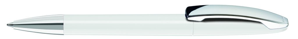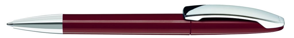 Drehkugelschreiber mit gedeckt glänzendem Gehäuse, Metallclip und Spitze glanzverchromt.