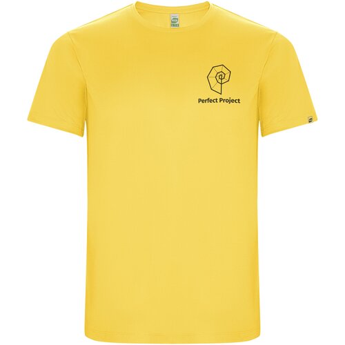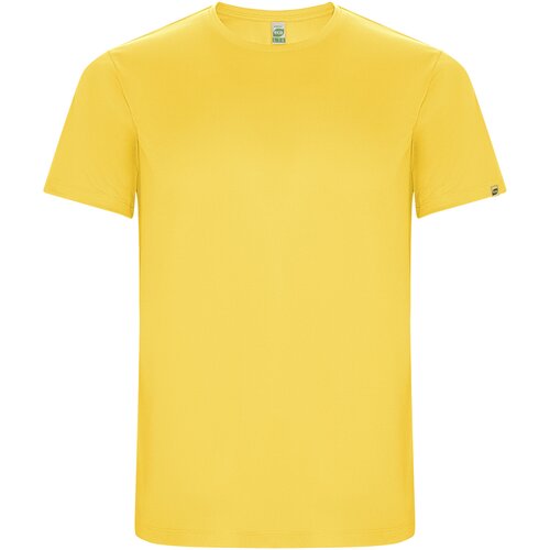Funktions-T-Shirt aus recyceltem Polyester CONTROL DRY. Rundhalsausschnitt mit farblich abgesetzten Nähten. ECO-Logo-Etikett am Ärmel. Verpackung aus Recyclingmaterial. Herausnehmbares ECO-Etikett. Verpackung aus Recyclingmaterial. Technisches Gewebe. Das Modell ist 180 cm groß und trägt Größe M.