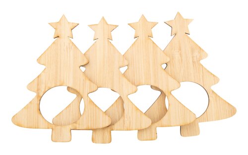 4-teiliges Serviettenringset in Weihnachtsbaumform aus Bambussperrholz.