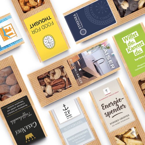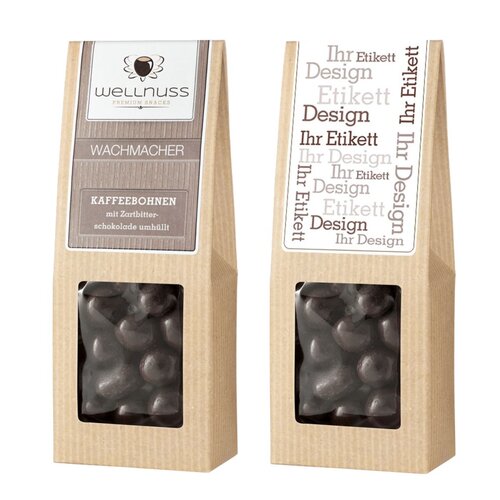 Ab 250 Stück mit Ihrem Motiv im 4c Druck auf dem Etikett der Faltschachtel, ab 2.500 Stück bedrucken wir den Faltschachtelkarton vollflächig: Der aufmerksamkeitsstarke Bestseller. Die Faltschachtel als nachhaltiges Premium-Giveaway. Die Schokoladenschicht ist gerade so dick, dass sie gegen das Kaffeearoma besteht, es jedoch nicht erdrückt oder verfälscht. Ein Espresso zum Kauen.