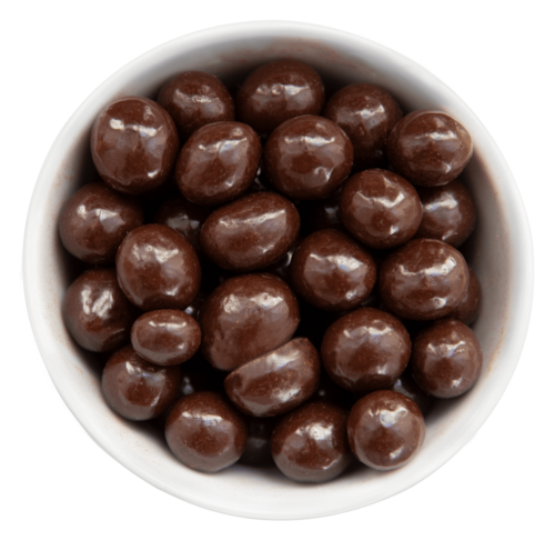 Kaffeebohnen mit Zartbitterschokolade umhüllt in der Faltschachtel