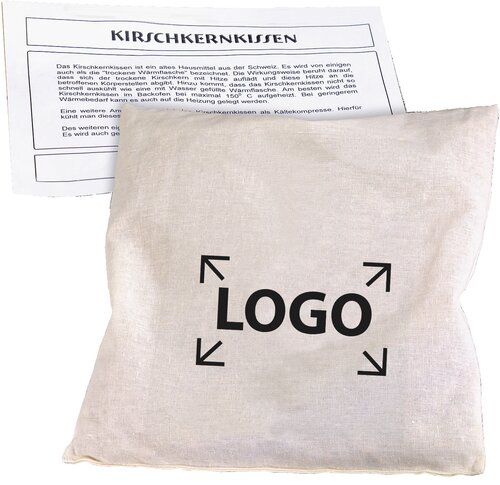 Kirschkernkissen nach dem Ursprung des altbewährten Schweizer Hausmittels. Der Natur-Baumwollstoff kann ab 100 Stück bedruckt werden. Andere Abmessungen auf Anfrage sind möglich.