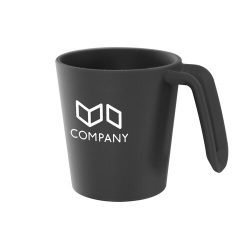 Für die Veredelung stehen drei Verfahren zur Wahl: Per Spezialdruck lassen sich bis zu 4 Farben direkt auf die Tasse aufbringen, was detaillierte Logos oder Kampagnenmotive ermöglicht. Lasergravur erzeugt auf der matten Oberfläche einen dezenten, dauerhaften Kontrast. Für besonders brillante Ergebnisse eignet sich das In-Mold Labeling, bei dem das Motiv bereits im Herstellungsprozess in die Oberfläche eingebracht wird.