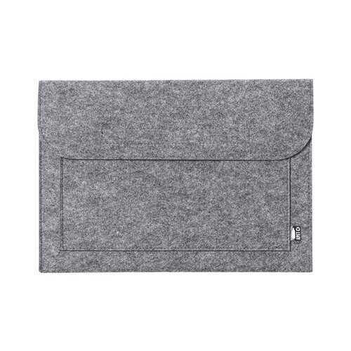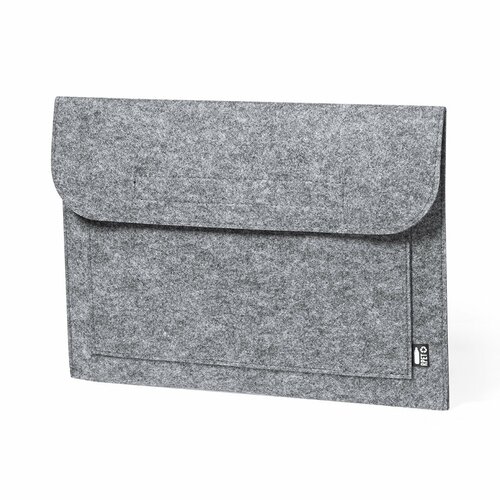 Laptophülle der Liene "Natur" aus widerstandsfähigem recyceltem RPET-Filz, das Ergebnis der Kombination des Recyclingprozesses von Kunststoffmaterialien mit der alten Technik der Filzherstellung, was zu einem Öko-Trend-Material führt, das nicht nur recycelten Ursprungs ist, sondern auch zu recycelbar. Überschlag mit Klettverschlüssen und Fronttasche, mit markantem RPET auf dem Außenetikett.