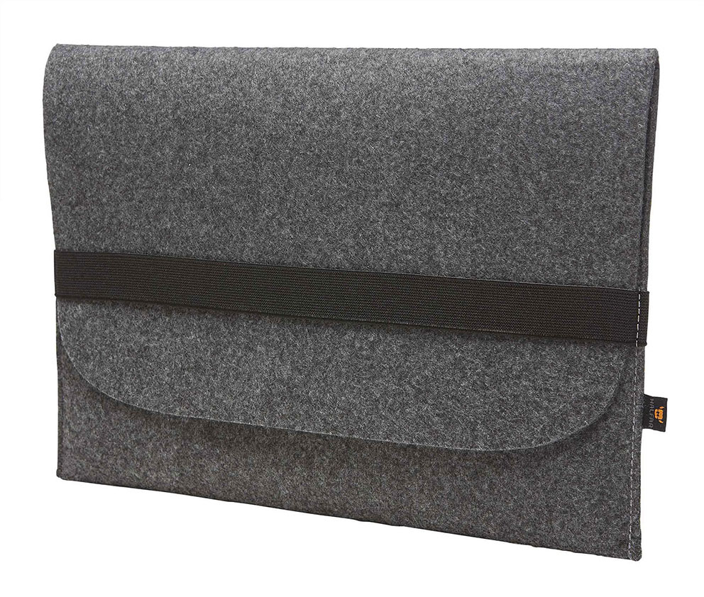wertige Filzhülle geeignet für DIN A4-Notizbücher und Tablets; elastisches Band zum Verschließen der Hülle